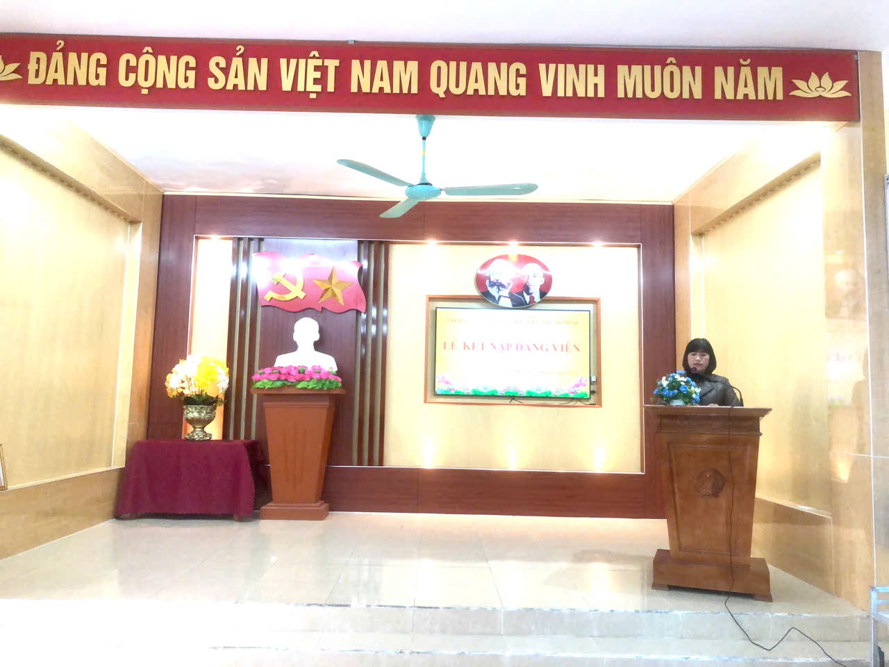 - Đ/c Hoàng Thị Hợi - Bí thư chi bộ công bố Quyết định kết nạp đảng viên